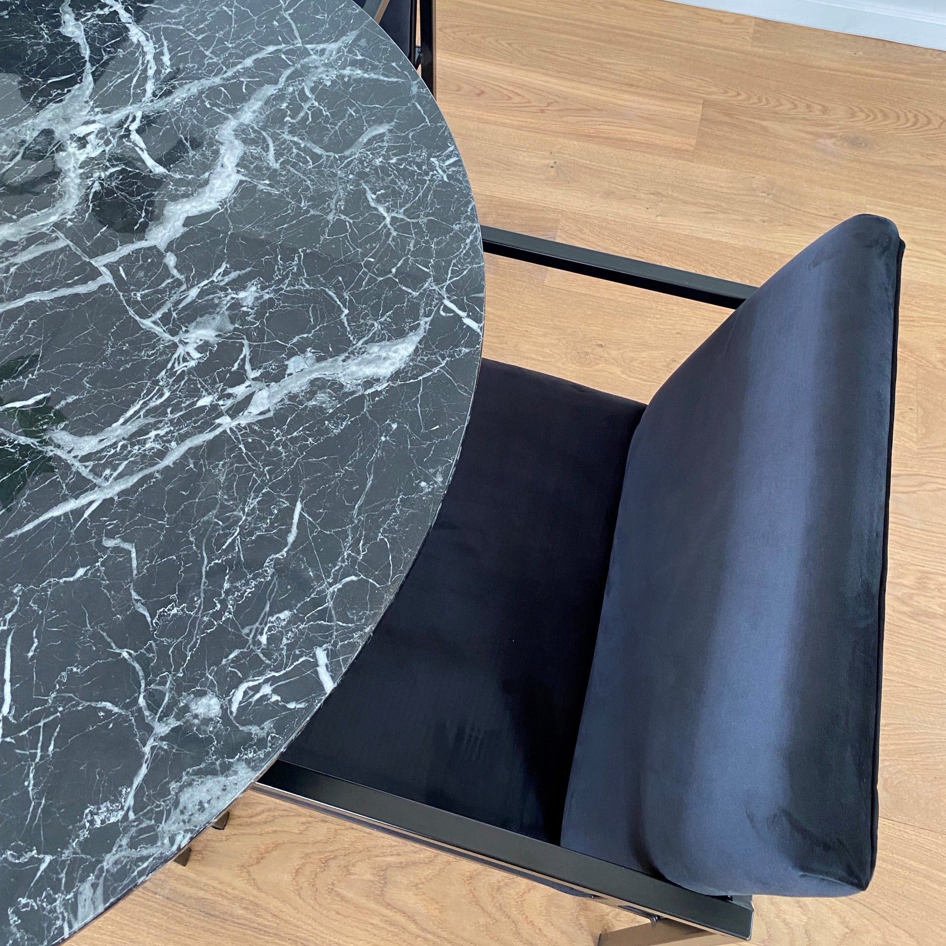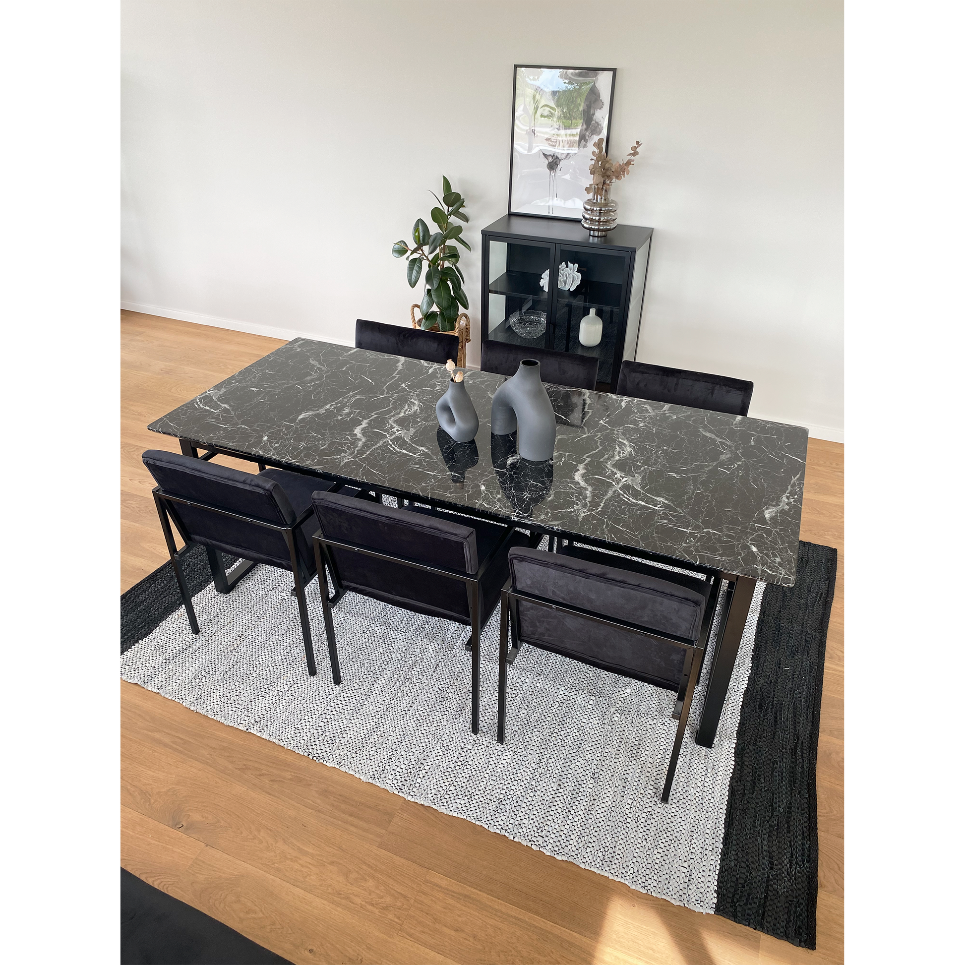 Allie is een unieke, minimalistische en mooie eetkamerstoel met armleuningen. De stoel is gemaakt van fluweel en heeft een mat gepoedercoat frame, wat samen met de grootte van de stoel zorgt voor veel veelzijdigheid. De stoel kan zowel gebruikt worden als eetkamerstoel, loungestoel of fauteuil in de woonkamer. Bovendien is de stoel goed gestoffeerd, waardoor het zitcomfort aangenaam is en je zonder ongemak vele uren kunt zitten. Dit is echt een unieke stoel met armleuningen die goed past bij Scandinavisch interieur. De stoel past bij al onze eettafels en kan volledig onder de tafel worden geschoven.