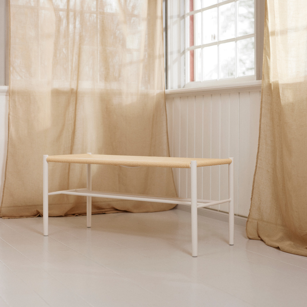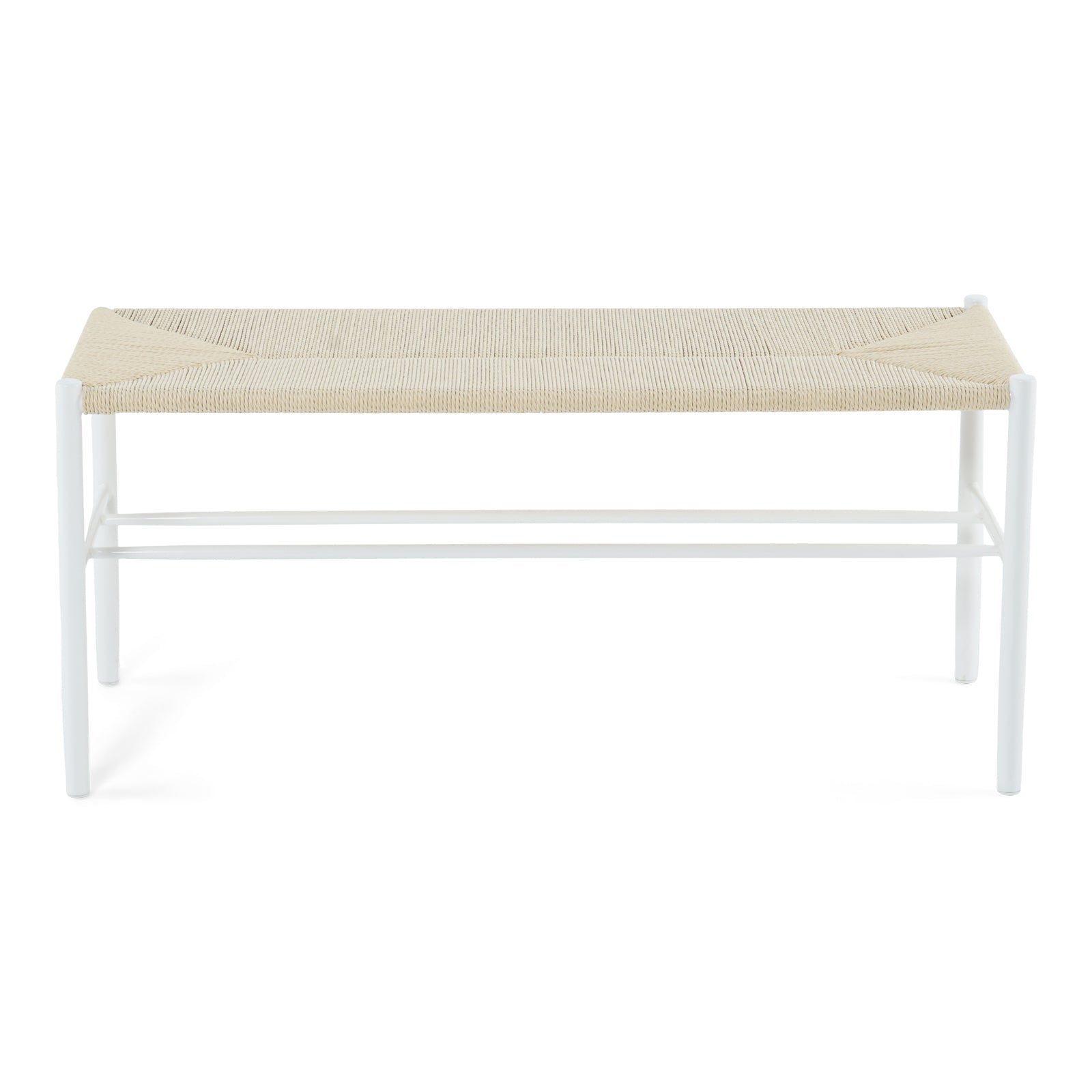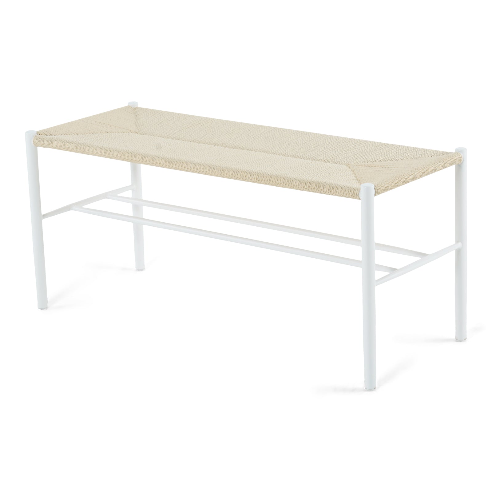 Bella - Zitbank in wit met gevlochten zitting, 100 cm