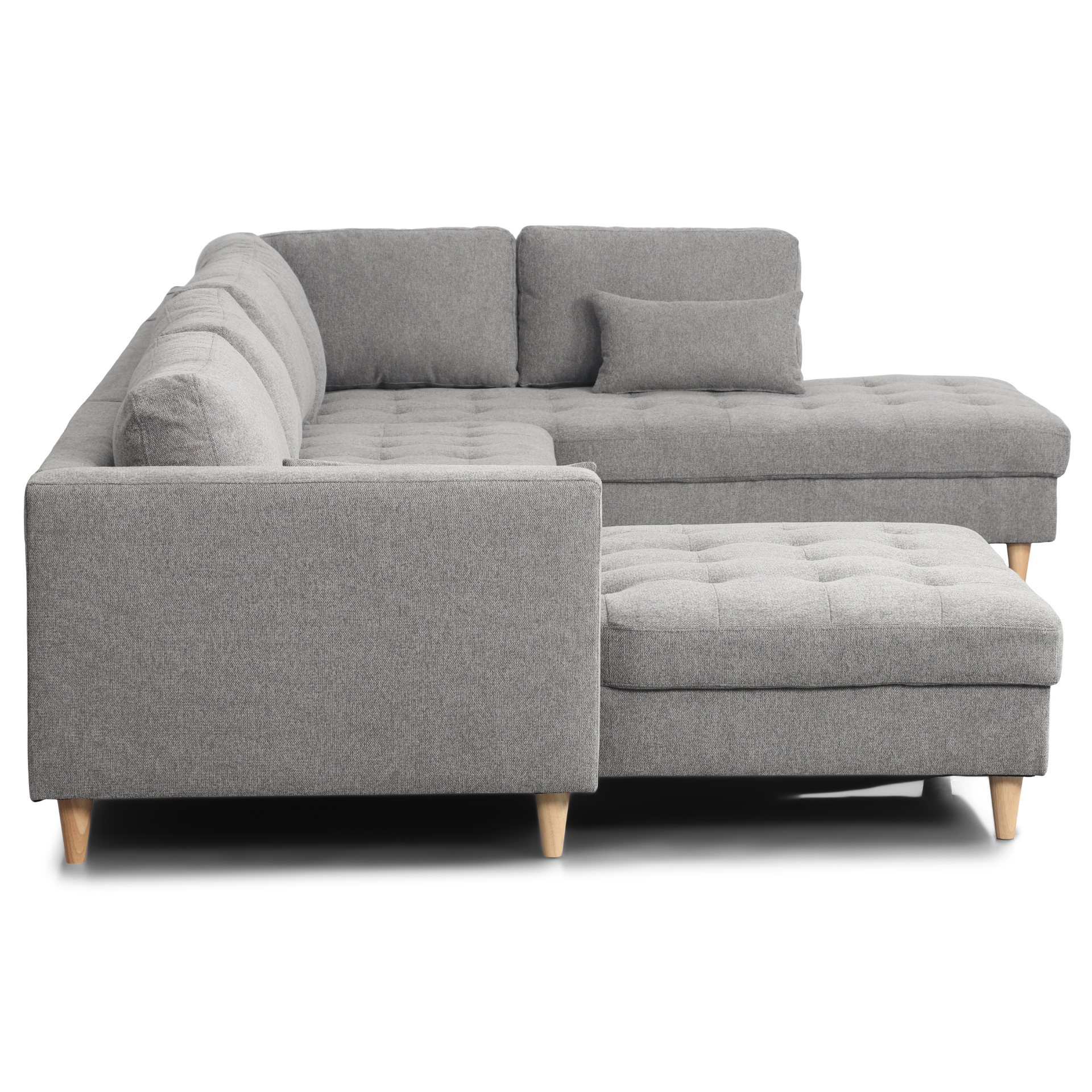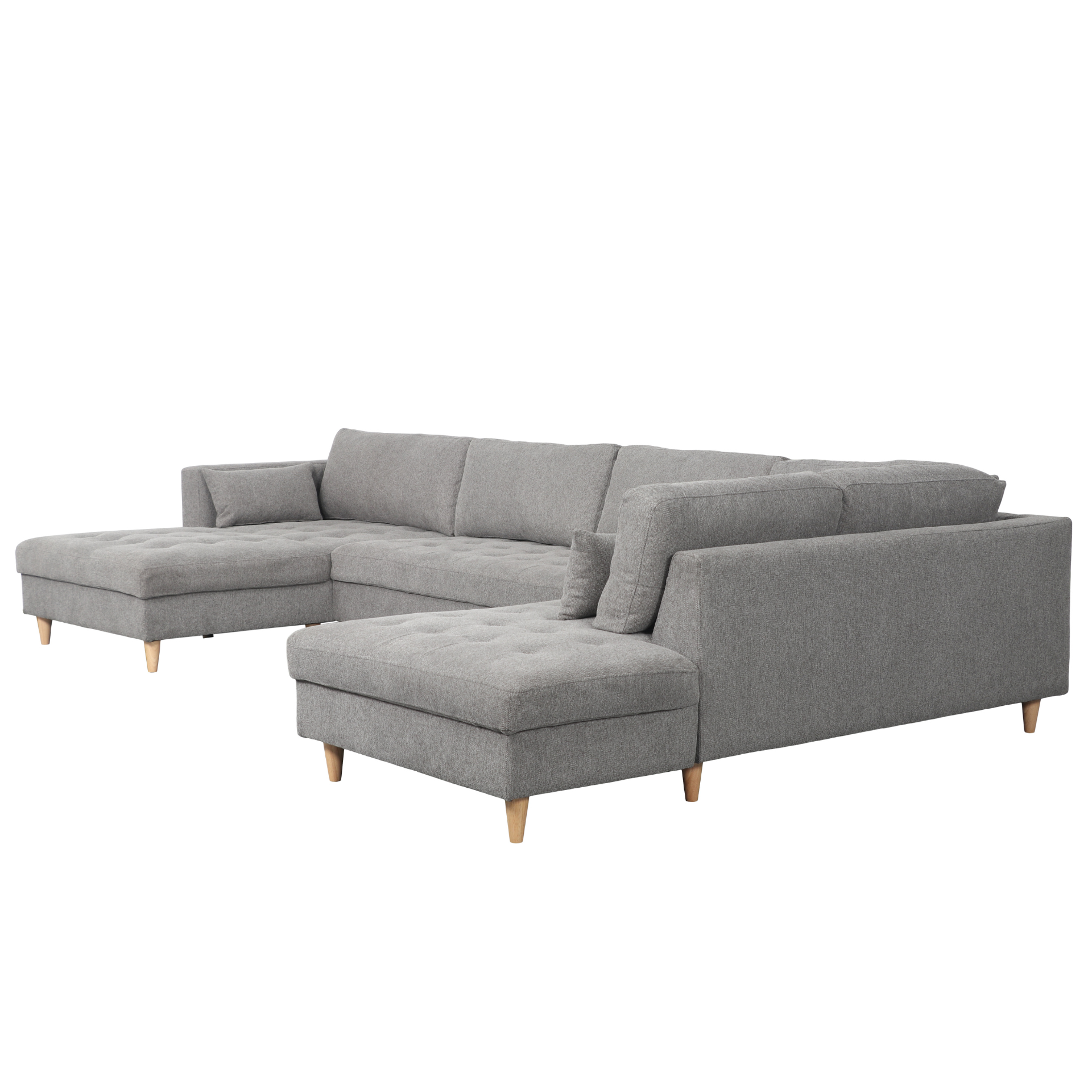 Brandy - Linkshoekige U-bank in grijs met chaise longue - L: 360 x D: 211 x H: 78 cm
