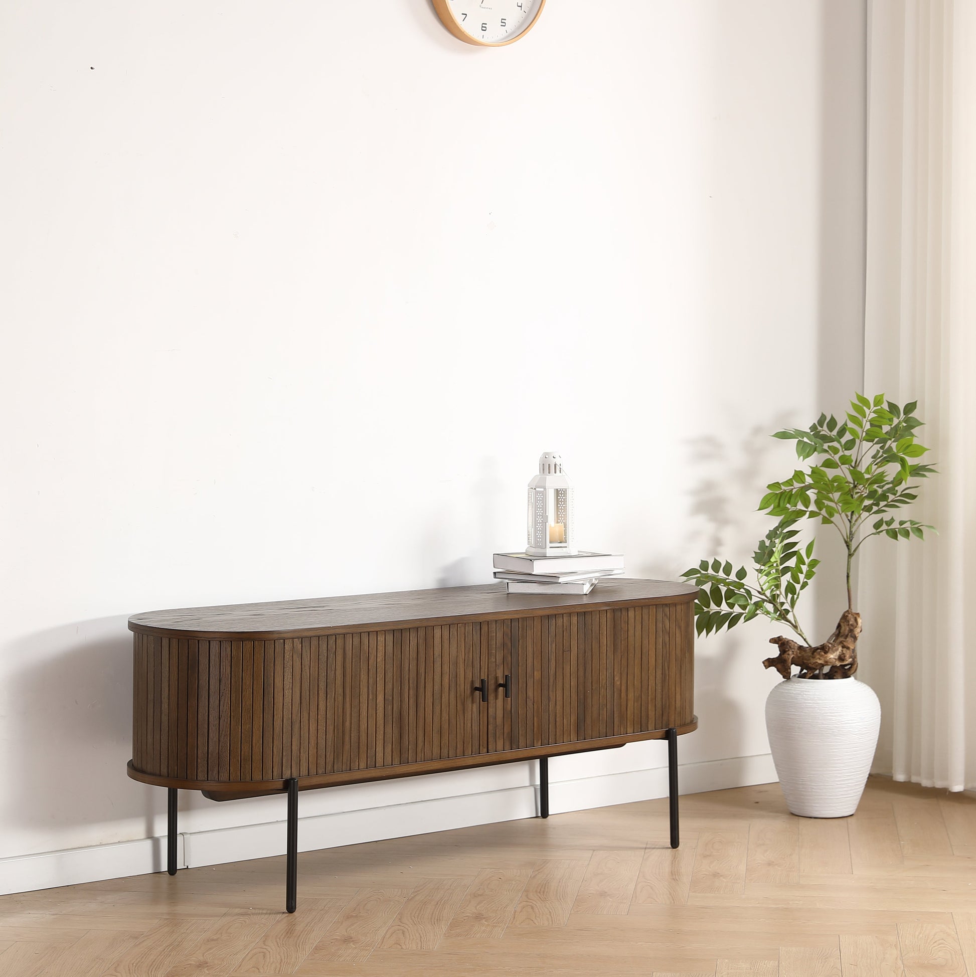 Vernieuw het interieur van je woonkamer met dit moderne tv-meubel van gerookt eikenhout. Met afmetingen van 138x40x55 cm biedt het een stijlvolle plek voor je televisie en heeft het rolluikdeuren die gemakkelijk toegang geven tot opbergruimte. De gerookte eikenhouten afwerking voegt diepte en contrast toe aan het interieur. Het meubel is ontworpen met de nadruk op duurzaamheid, en de strakke lijnen en minimalistisch design passen perfect in een modern huis, en bieden zowel stijl als functionaliteit voor je interieur.