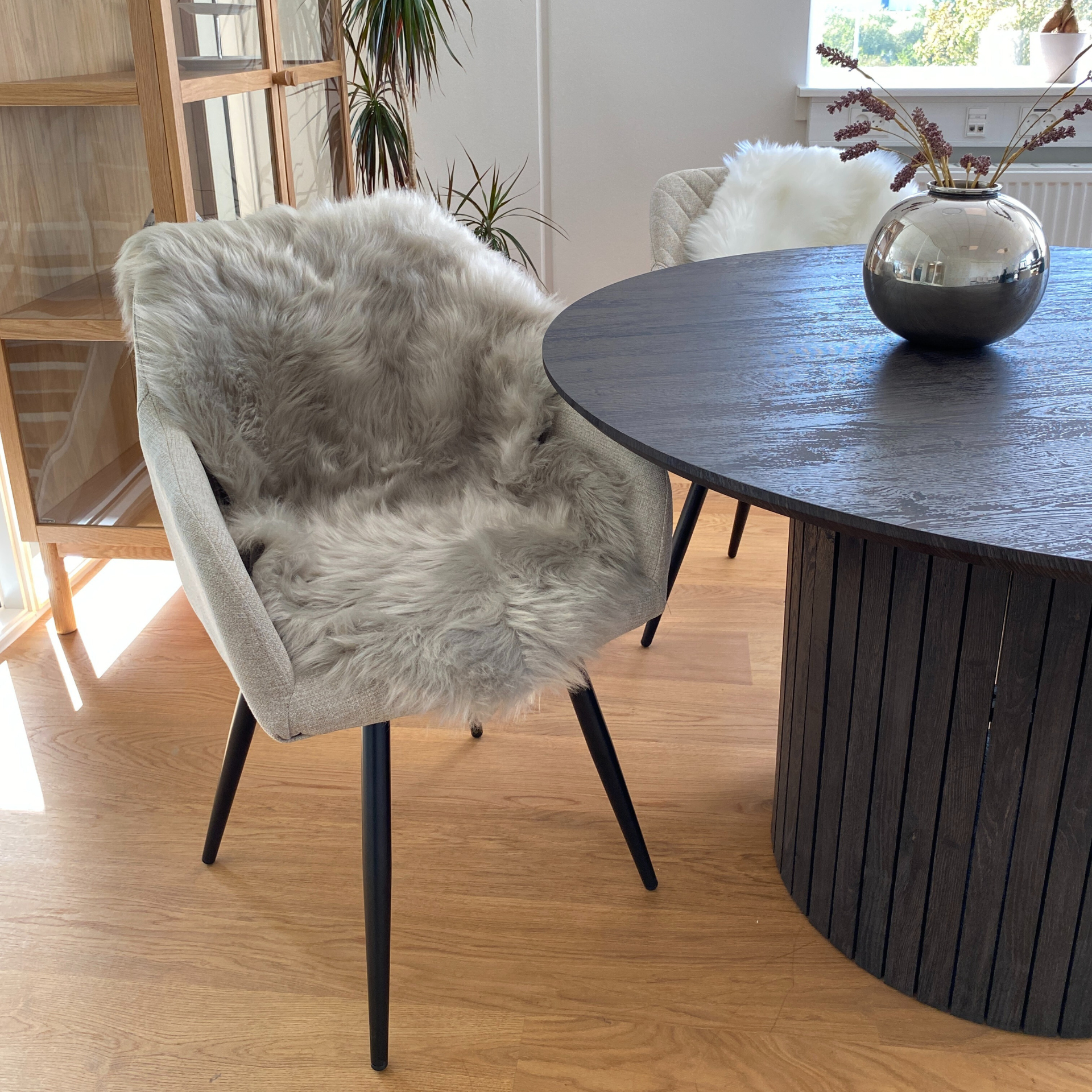Creëer een sfeer van luxe en gezelligheid in je huis met dit prachtige geïmiteerde langharige lamsvel tapijt. Ons grijze lamsvel tapijt voegt direct een verfijnde en moderne touch toe aan elke ruimte. De langharige vacht en diepe, glanzende grijze kleur creëren een sensationeel contrast en voegen elegantie toe aan zowel traditionele als moderne interieurs.