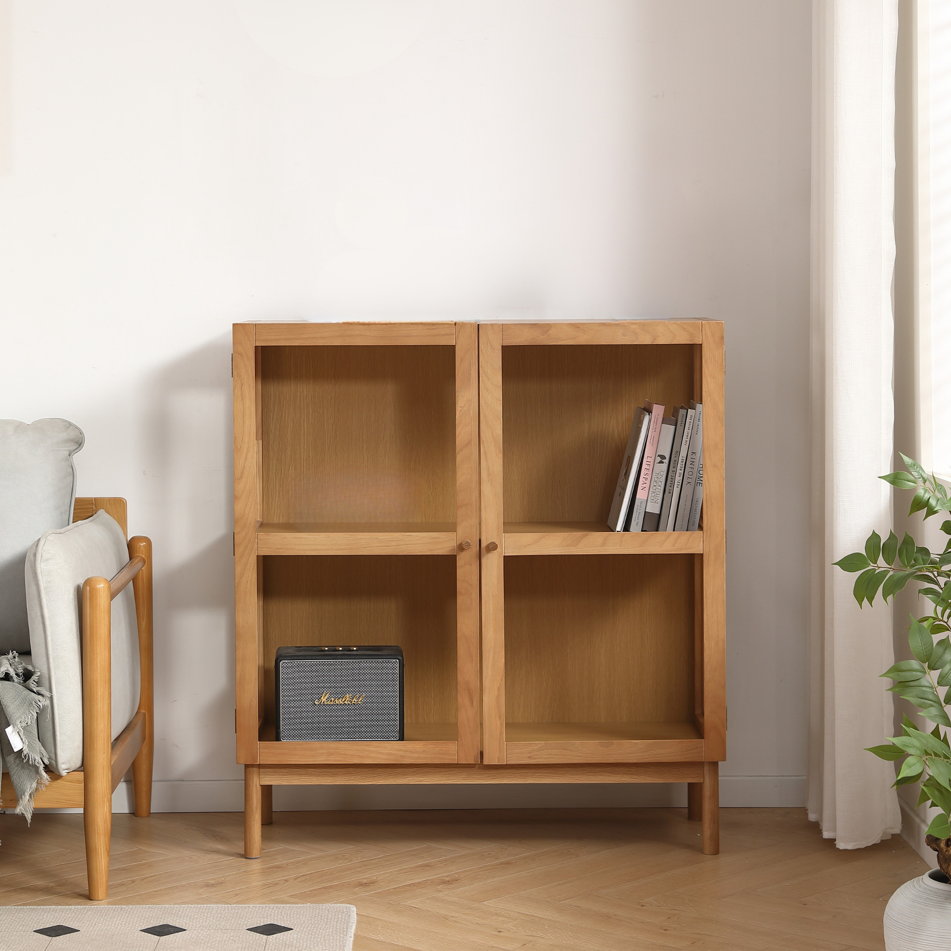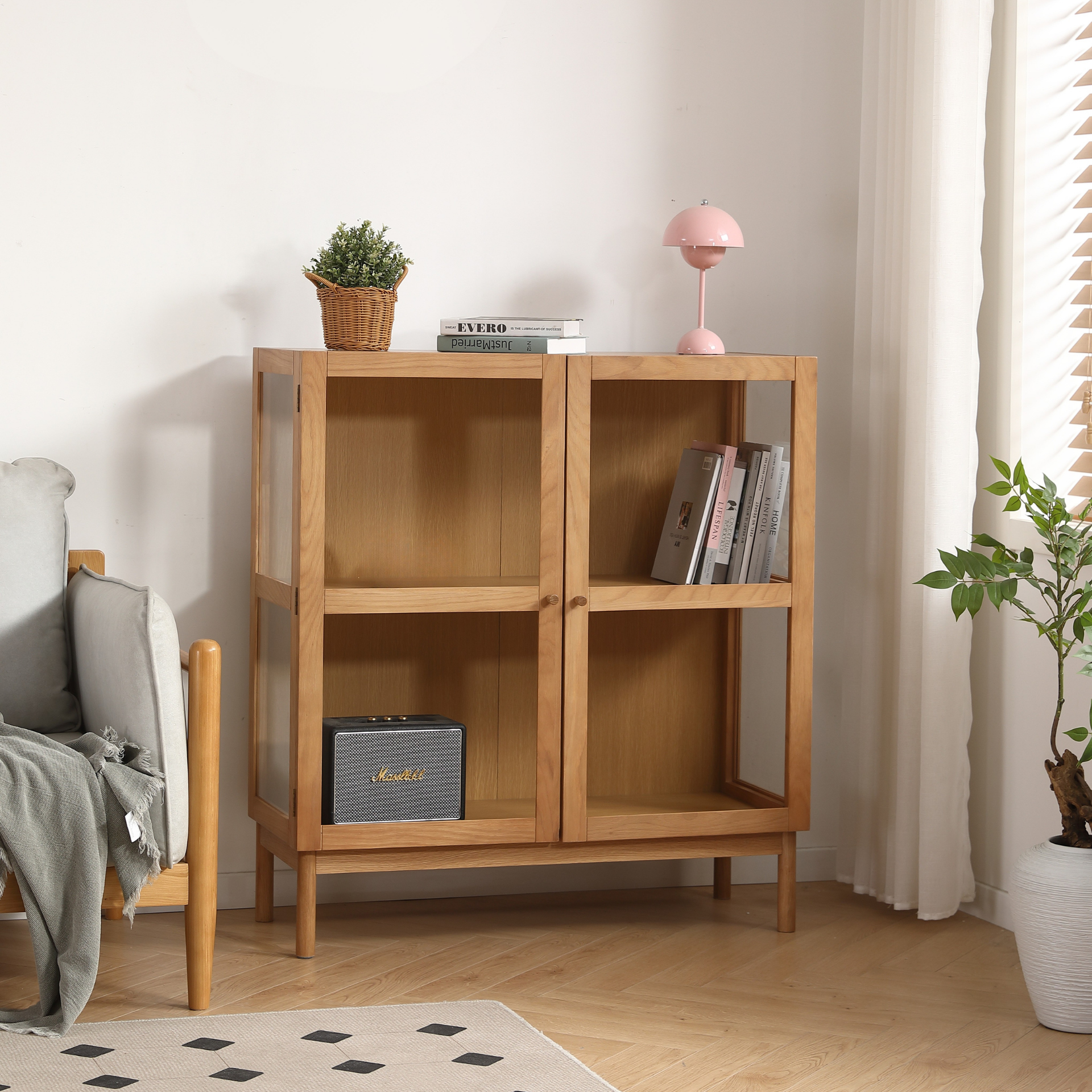 Deze eikenhouten vitrinekast heeft prachtig vormgegeven deuren met glazen panelen, waardoor u uw persoonlijke inrichting op een stijlvolle manier kunt laten zien. Met glazen vitrinekasten kunt u ten volle genieten van de zichtbaarheid van uw voorwerpen, terwijl ze beschermd zijn tegen stof en schade.