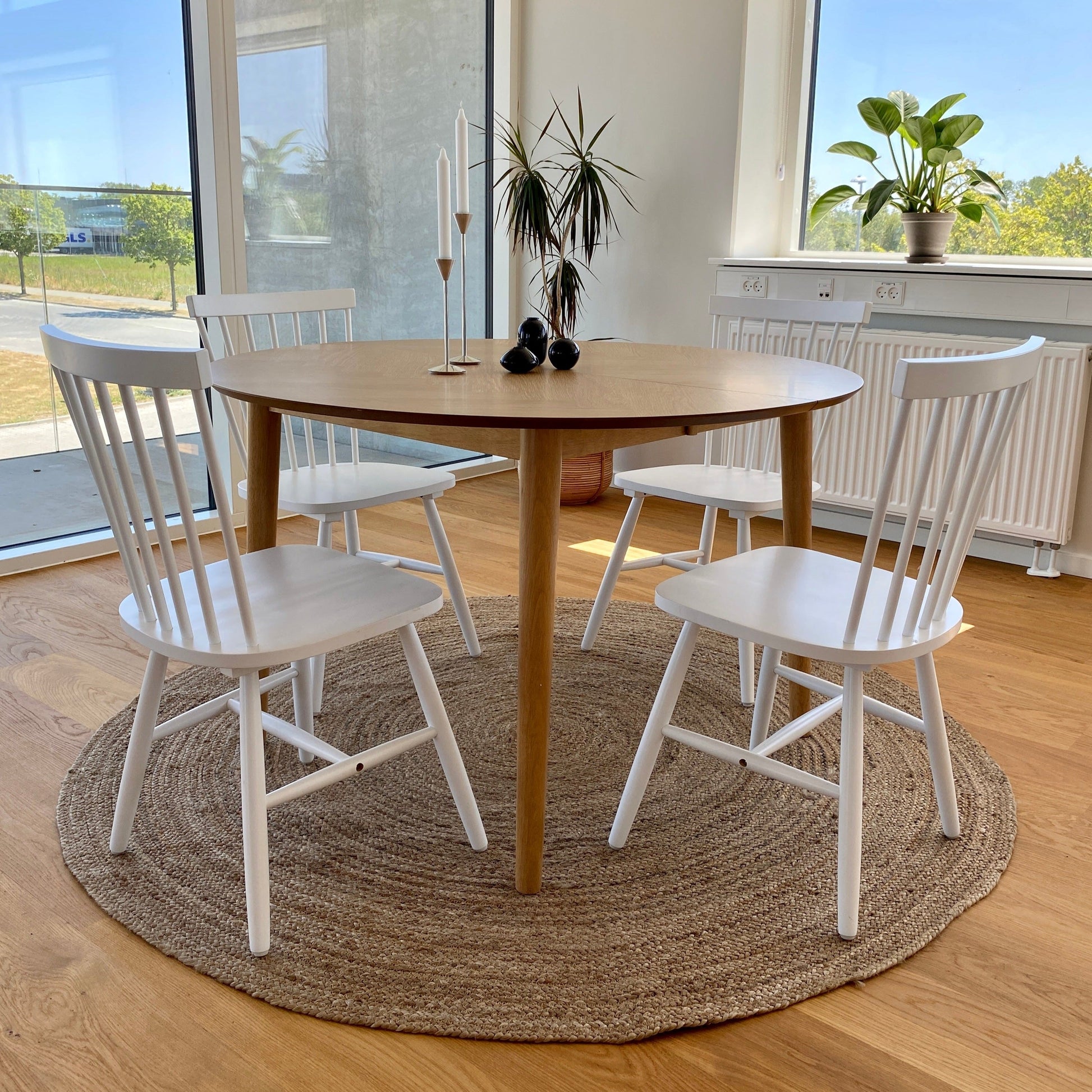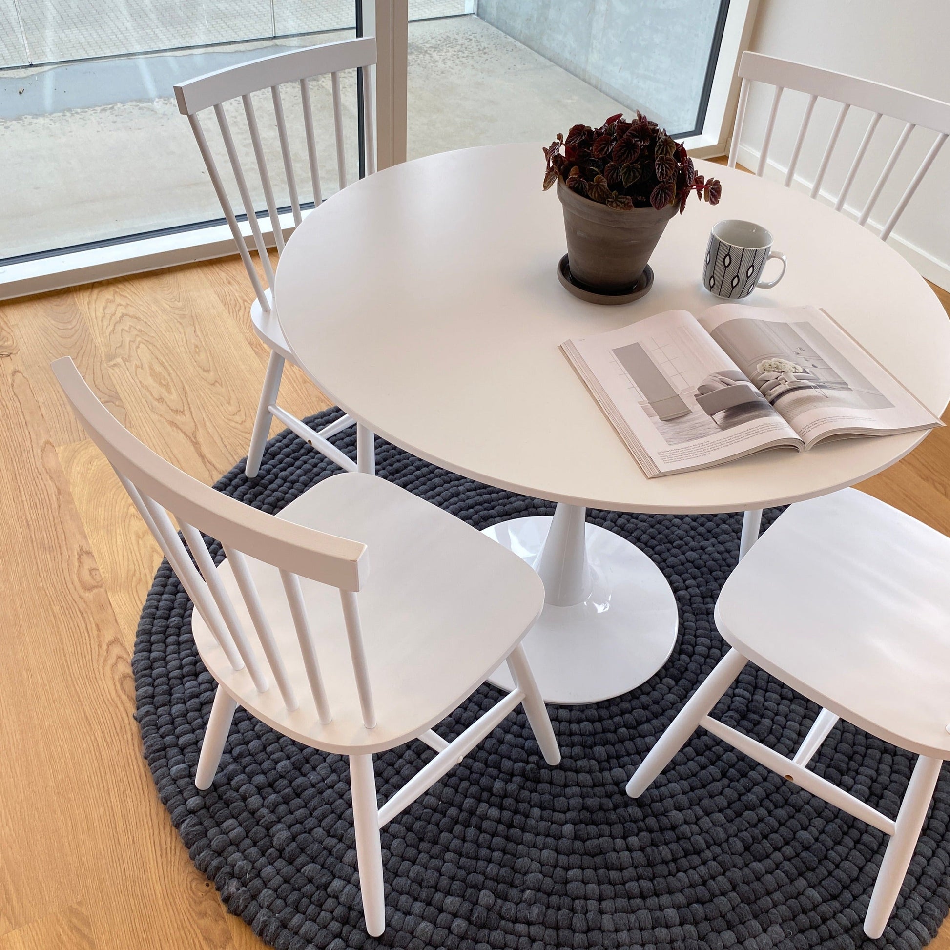 De zitting is afgerond en voor optimaal comfort kan een kussen van lamsvacht worden toegevoegd om je urenlang comfortabel te houden. Het strakke en eenvoudige ontwerp van de stoel maakt hem perfect voor zowel eetkamer als kantoor.