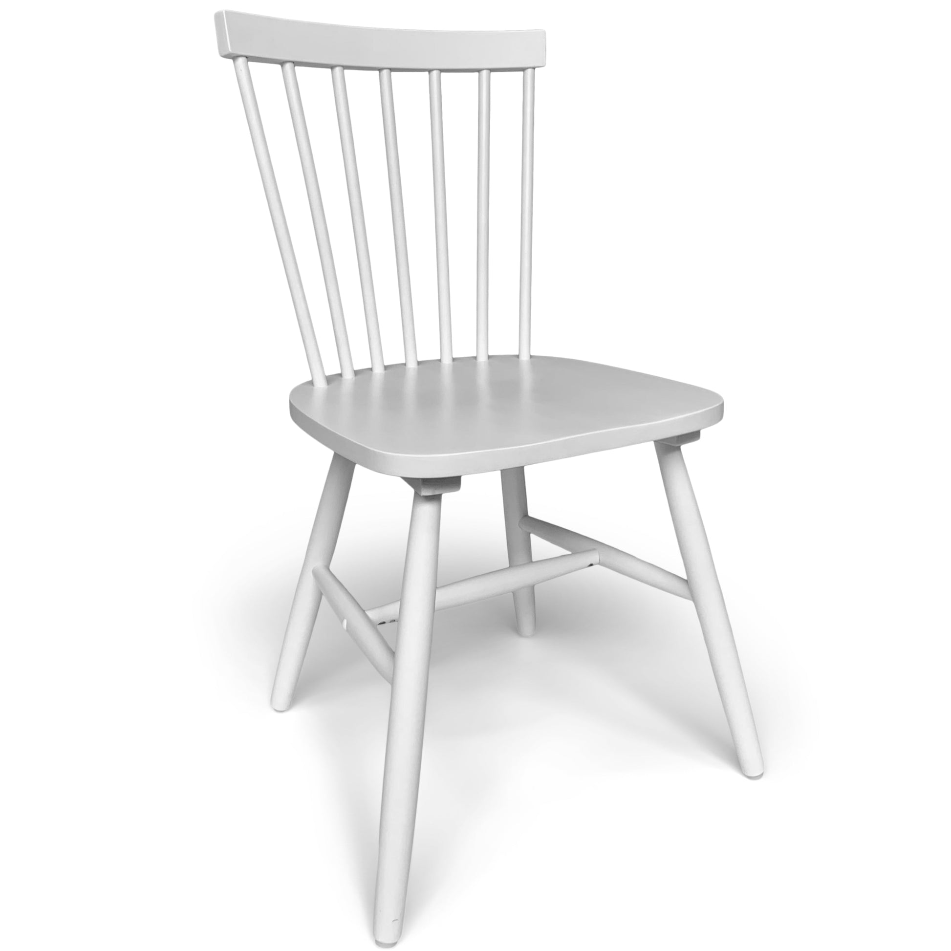 De stoel is gemaakt van een stevig houten frame dat duurzaamheid en stabiliteit garandeert. Hij heeft een mooie witgelakte afwerking die past bij elke inrichting en een verfijnde en moderne look toevoegt.