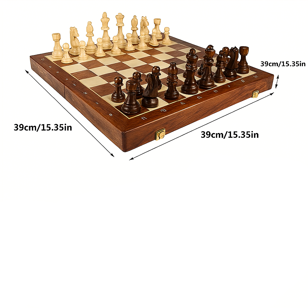 Deze schaakset stimuleert strategisch denken en concentratie, en biedt een waardevolle activiteit voor gezinnen, vrienden en schaakliefhebbers. Het compacte ontwerp zorgt ervoor dat de set gemakkelijk te bewaren of mee te nemen is.