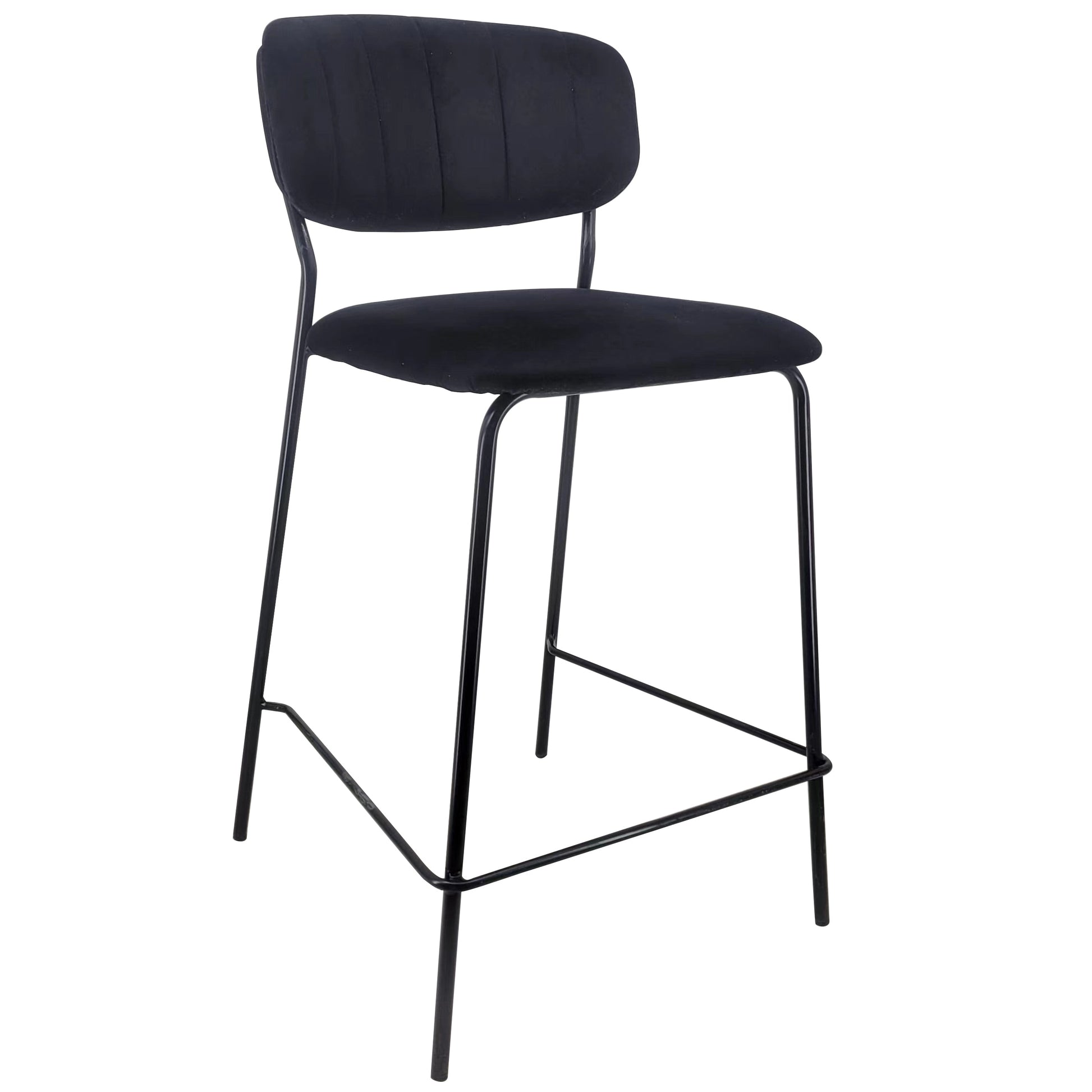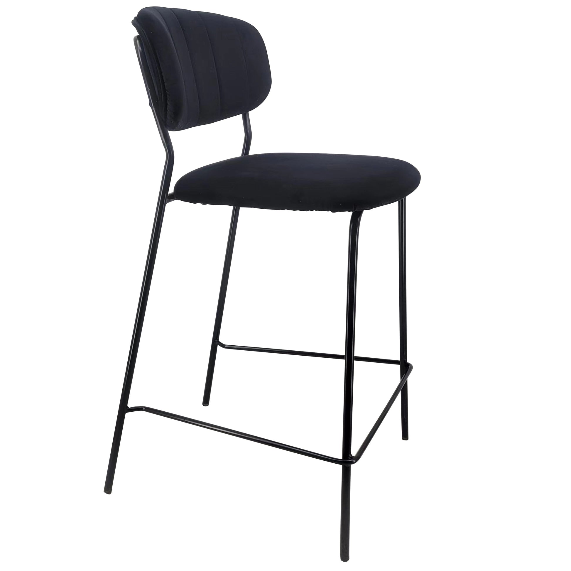Lucia Barkruk met Rugleuning - Zwart Velours 65 cm