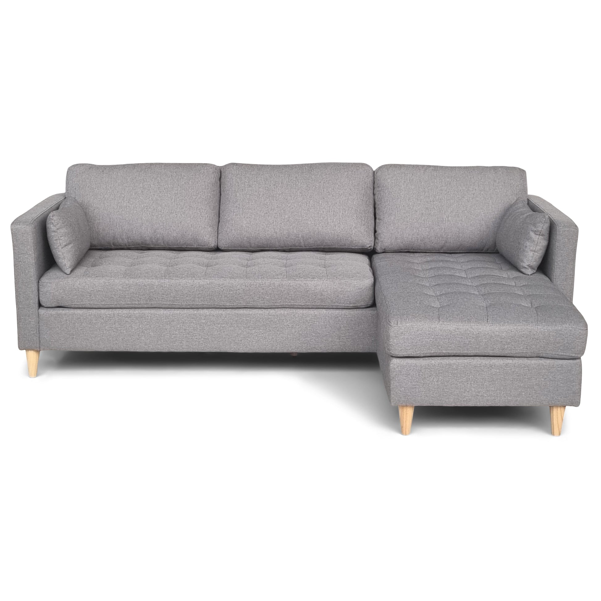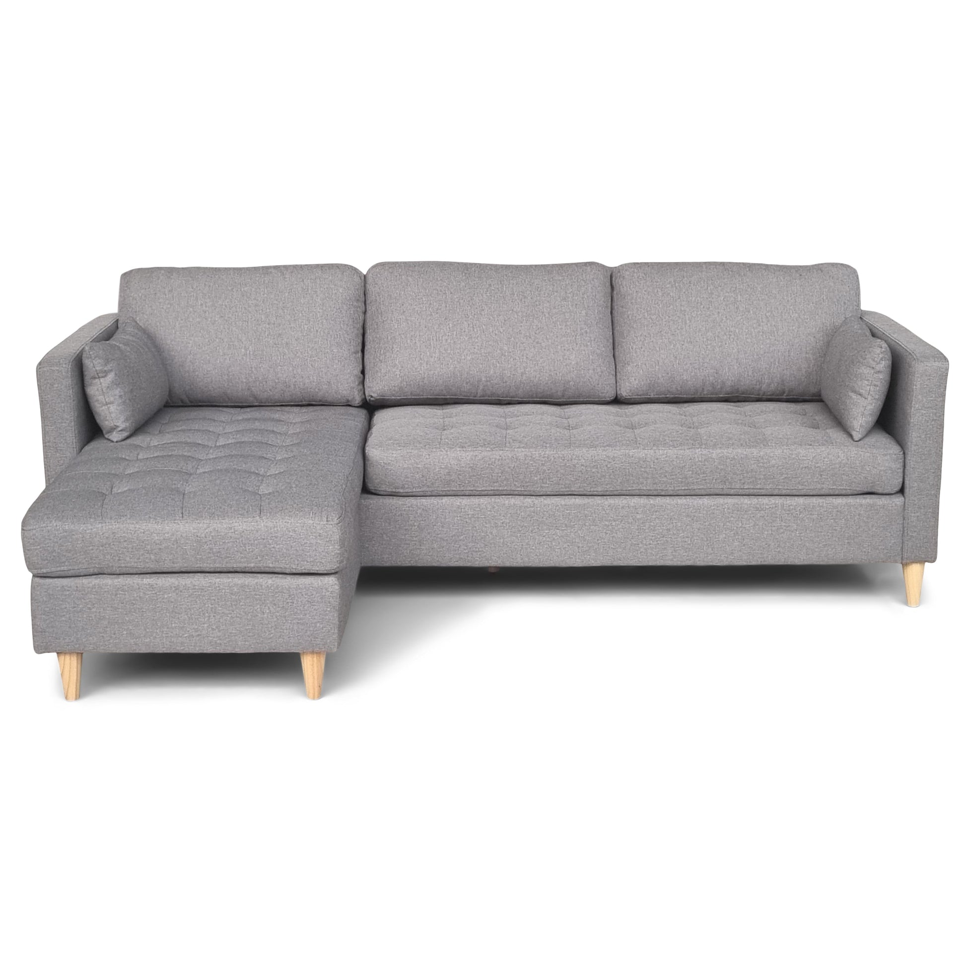 Lulu - Rechtsomkeerbare en linksomkeerbare grijze chaise longue bank - L: 215 x D: 82 x H: 78 cm