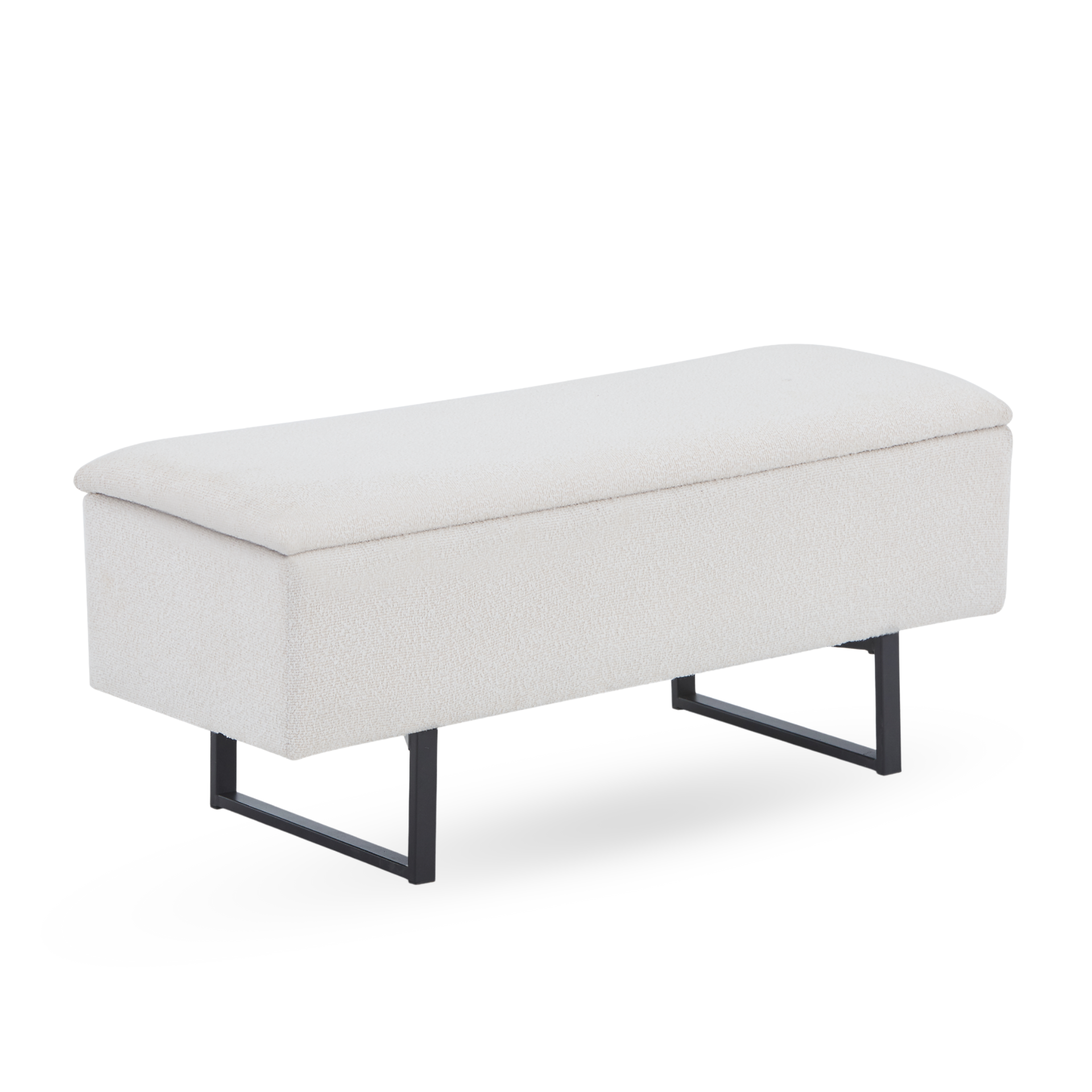 Malika bank met opbergruimte in wit bouclé 95x35x42 cm