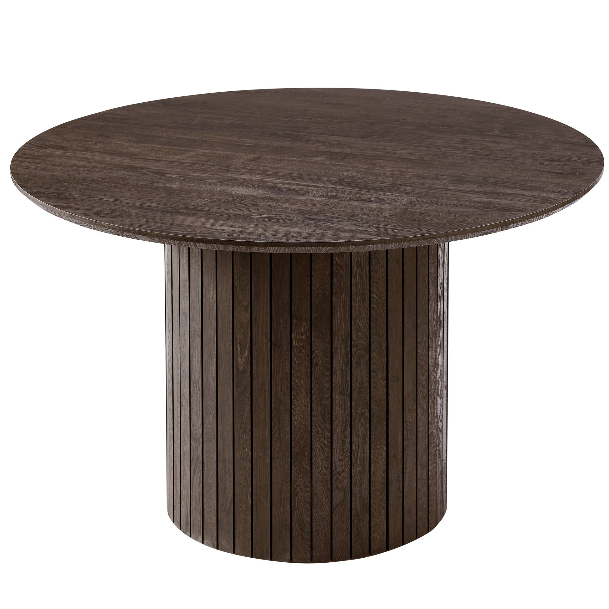 Milas ronde lamellen eettafel - Ø120 cm - Gerookt eikenhout met kolompoot