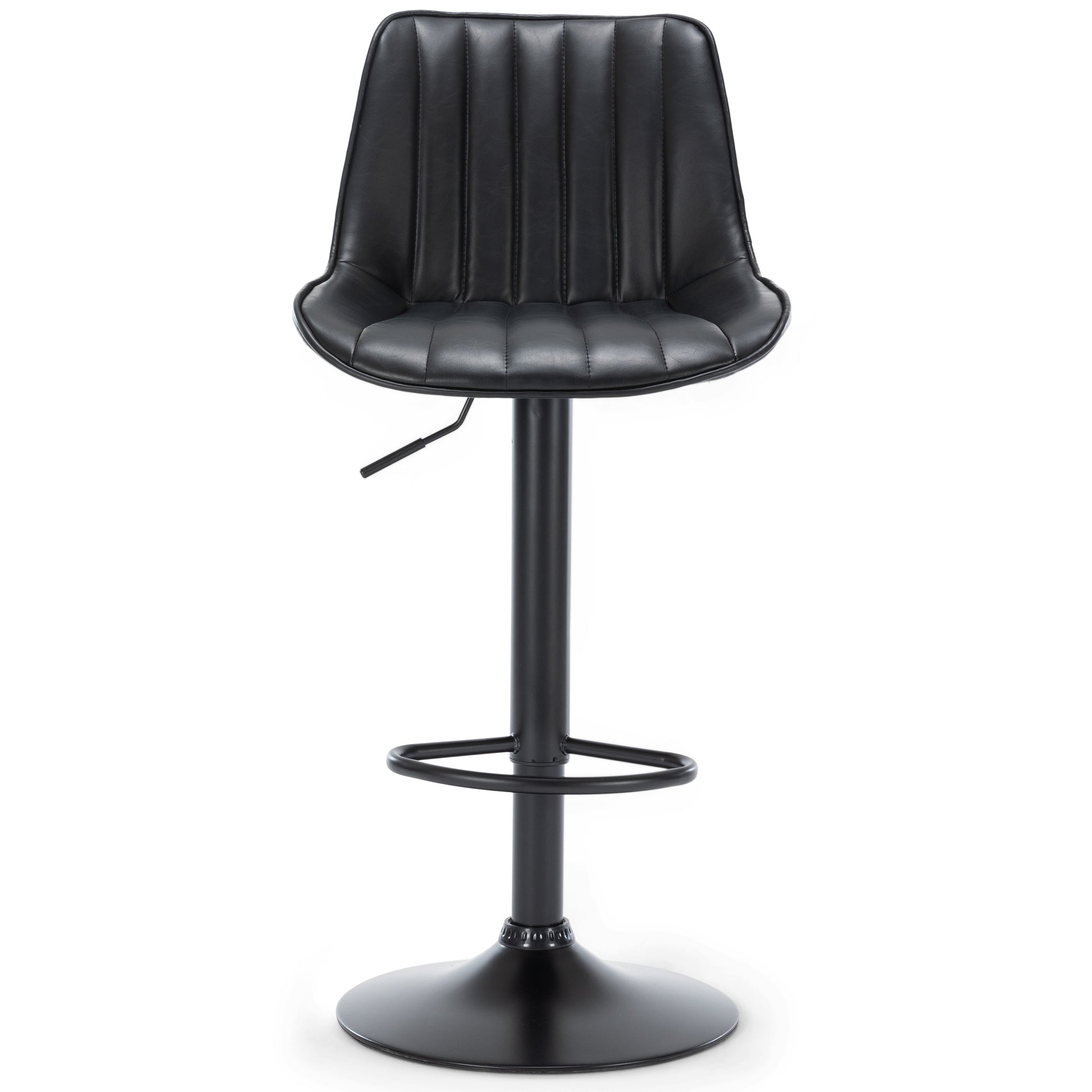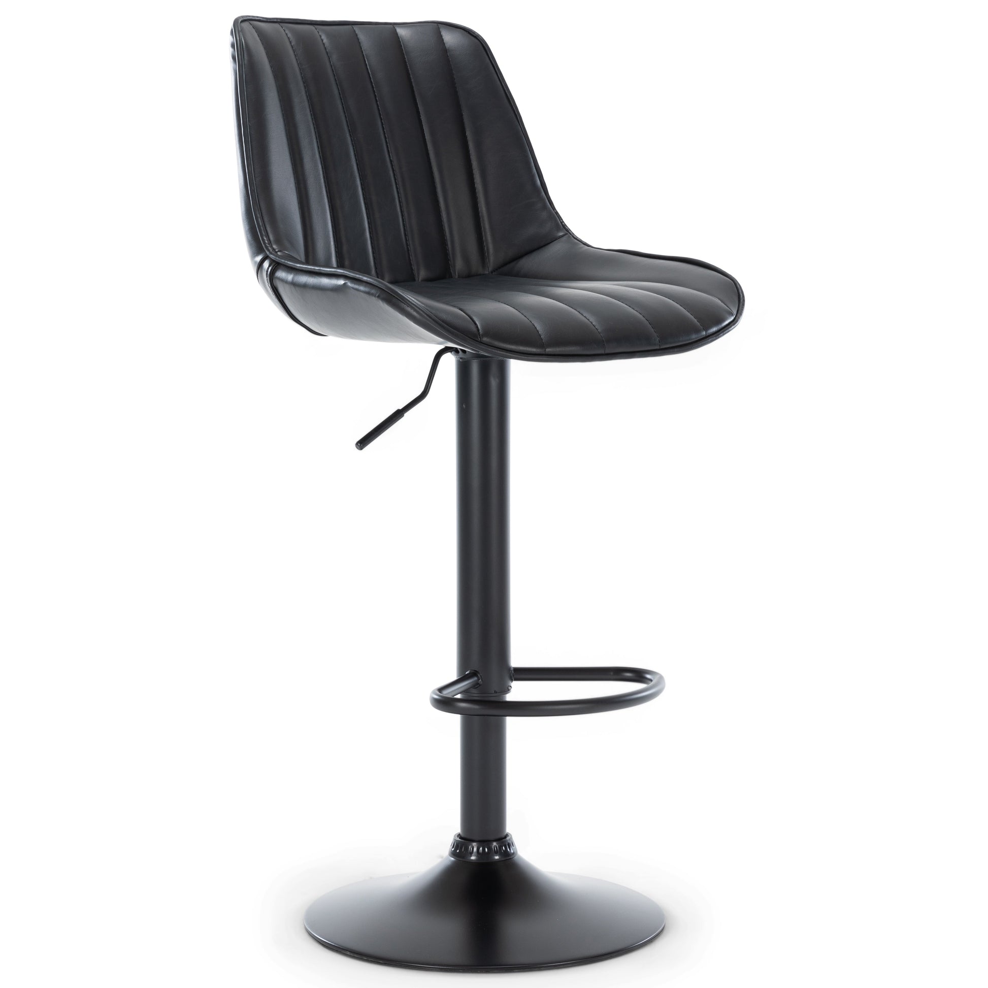 Otto - Verstelbare barkruk van zwart kunstleer met 360 graden draaifunctie