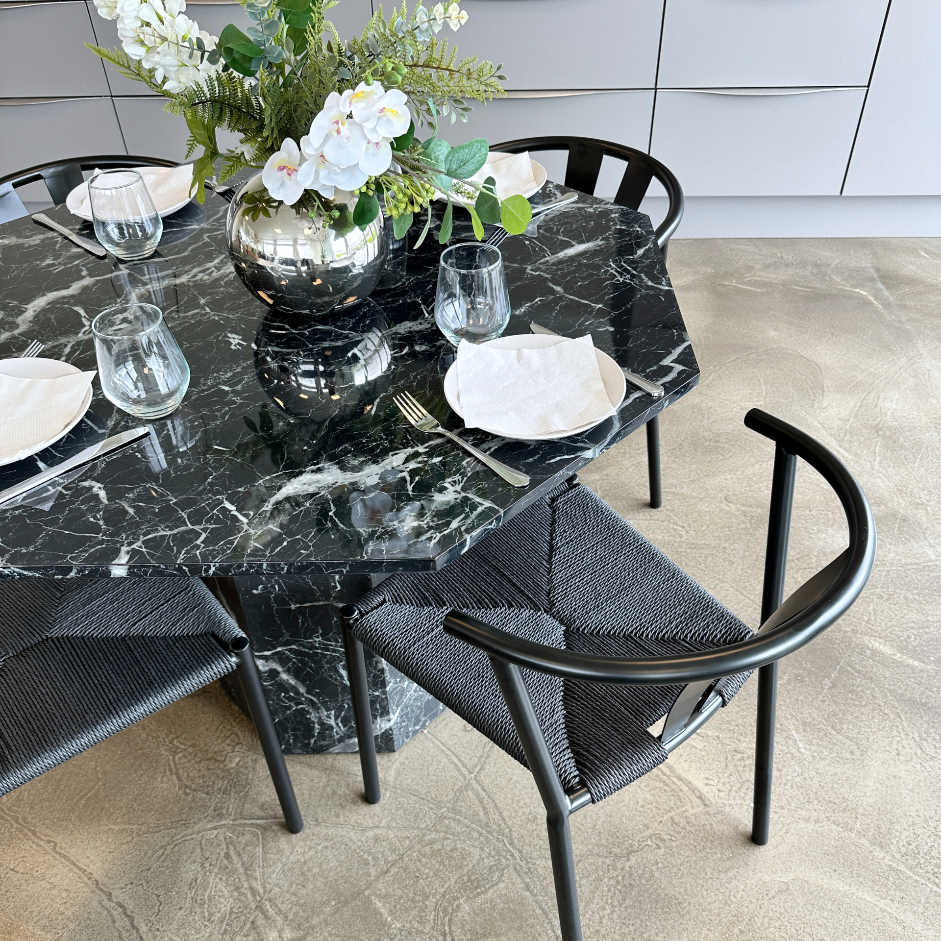 Shila eetkamerstoel zwart met zwarte Gevlochten zitting