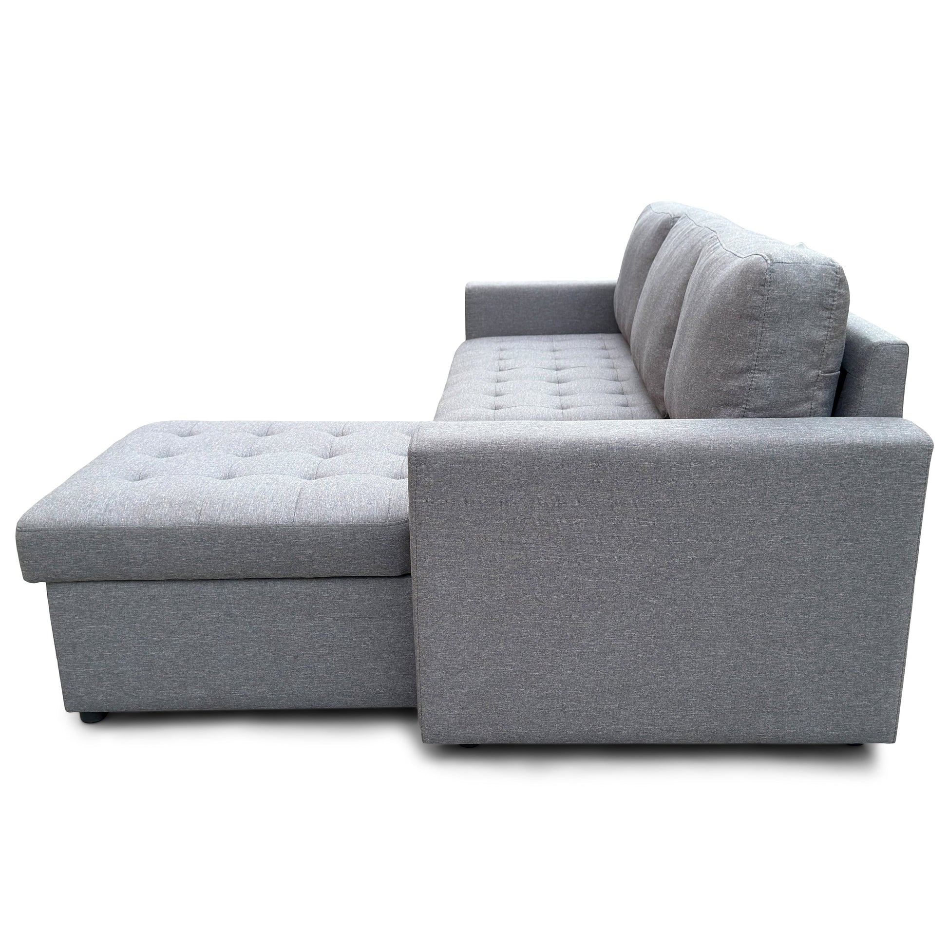 Sinus grijze slaapbank met chaise longue en opbergruimte