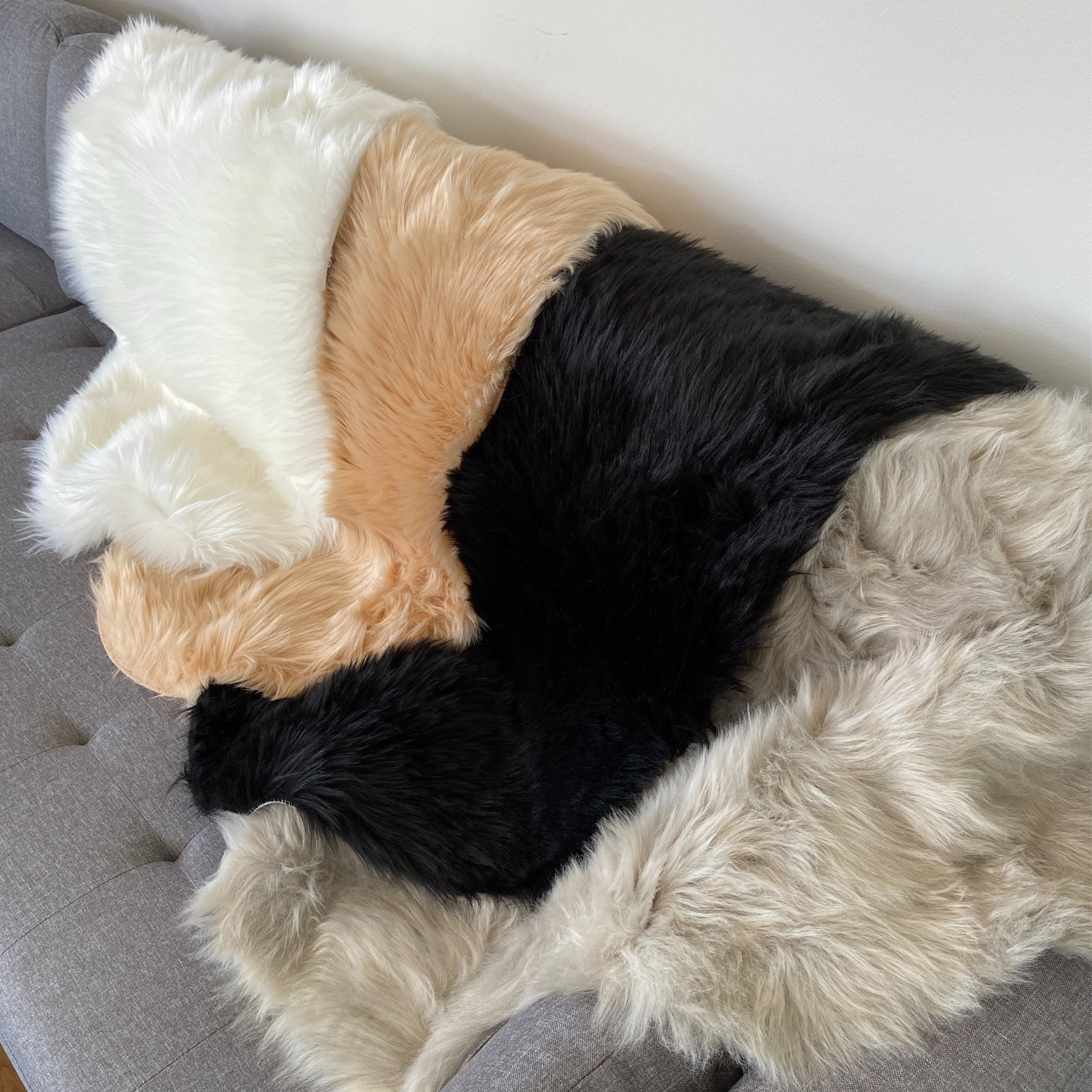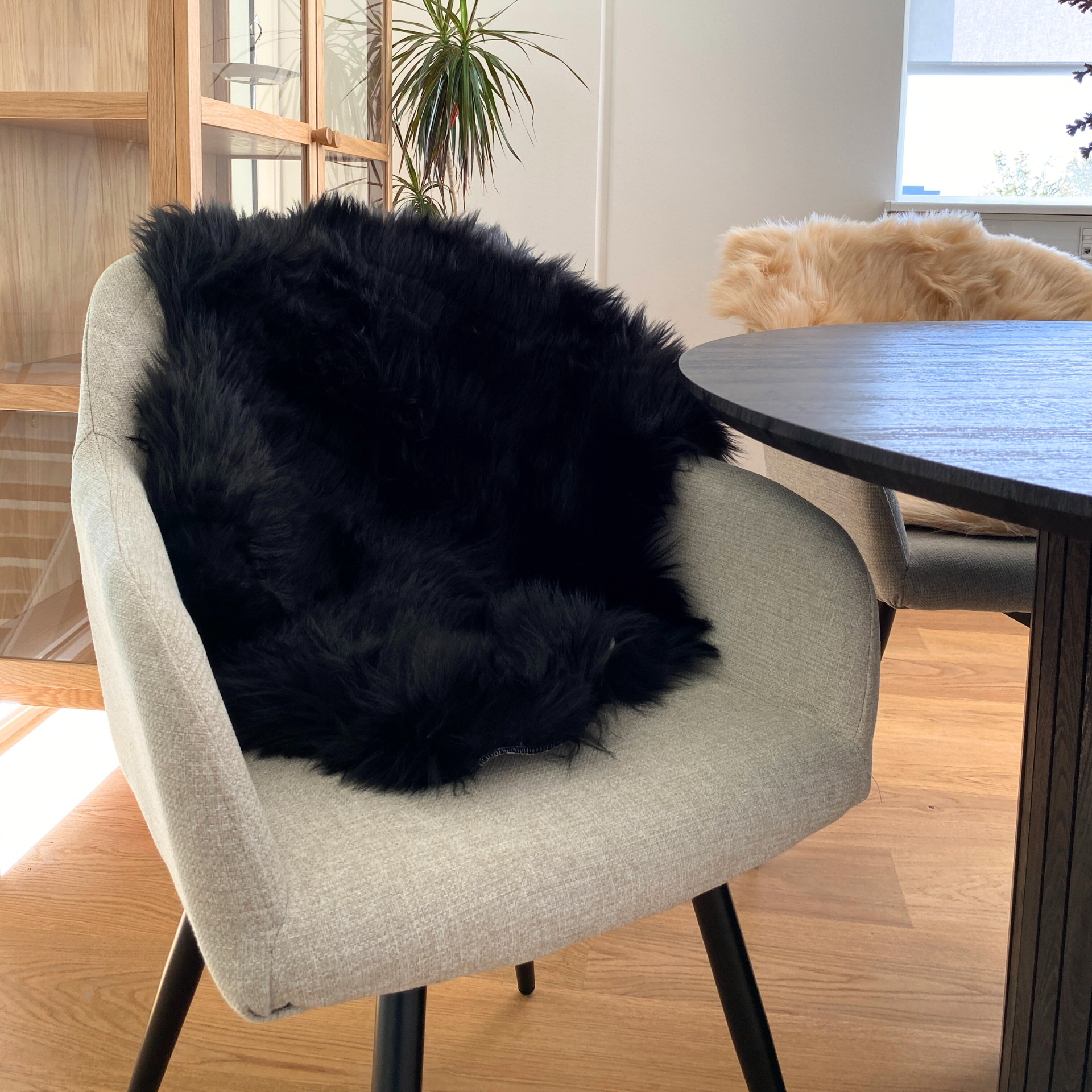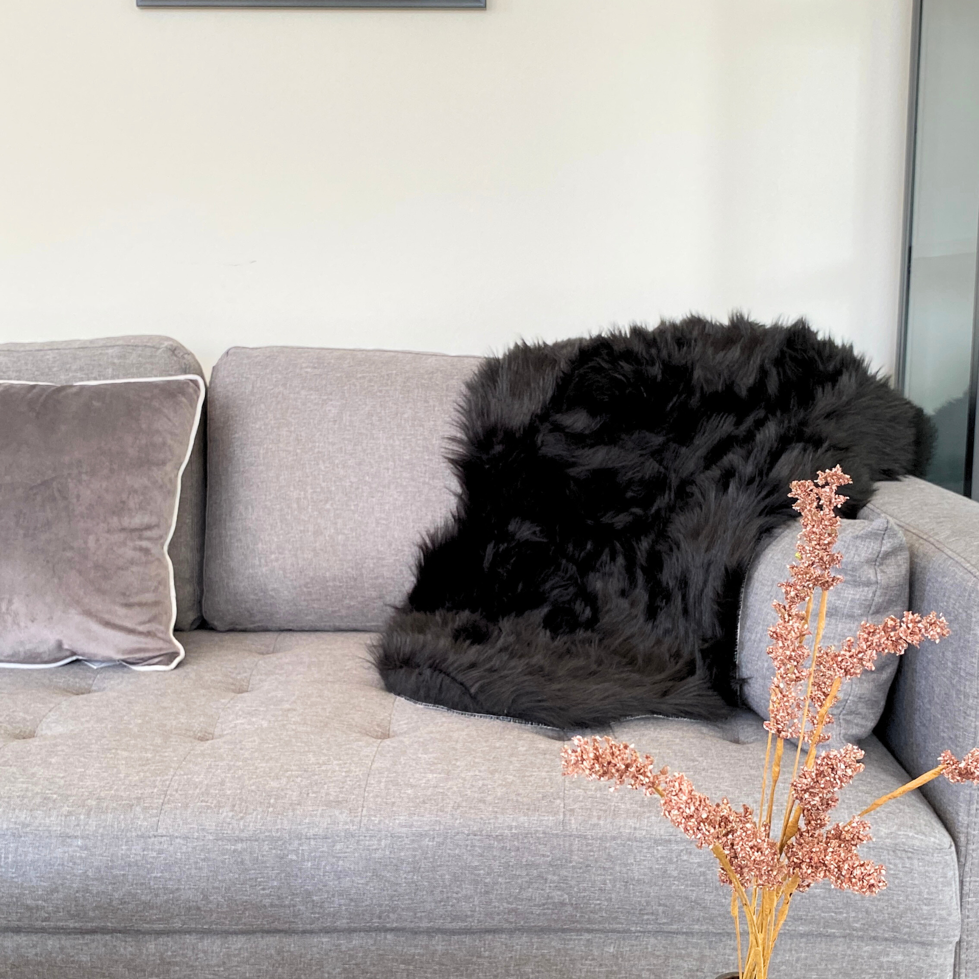 Creëer een sfeer van luxe en gezelligheid in je huis met dit prachtige geïmiteerde langharige lamsvel tapijt. Ons zwarte lamsvel tapijt voegt direct een verfijnde en moderne touch toe aan elke ruimte. De langharige vacht en diepe, glanzende zwarte kleur creëren een sensationeel contrast en voegen elegantie toe aan zowel traditionele als moderne interieurs.