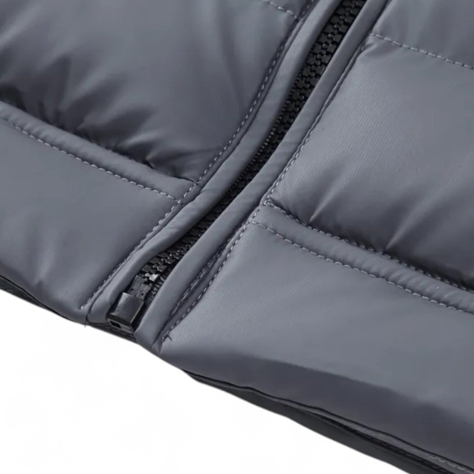 Deze heren gewatteerde winterjas combineert warmte, stijl en gemak in één design. De jas heeft een sportieve look met een gewatteerde voorkant en zachte mouwen, ideaal voor koude dagen. Dankzij het lichte maar isolerende materiaal biedt deze jas uitstekende bescherming tegen kou, terwijl je er moeiteloos stijlvol uitziet.