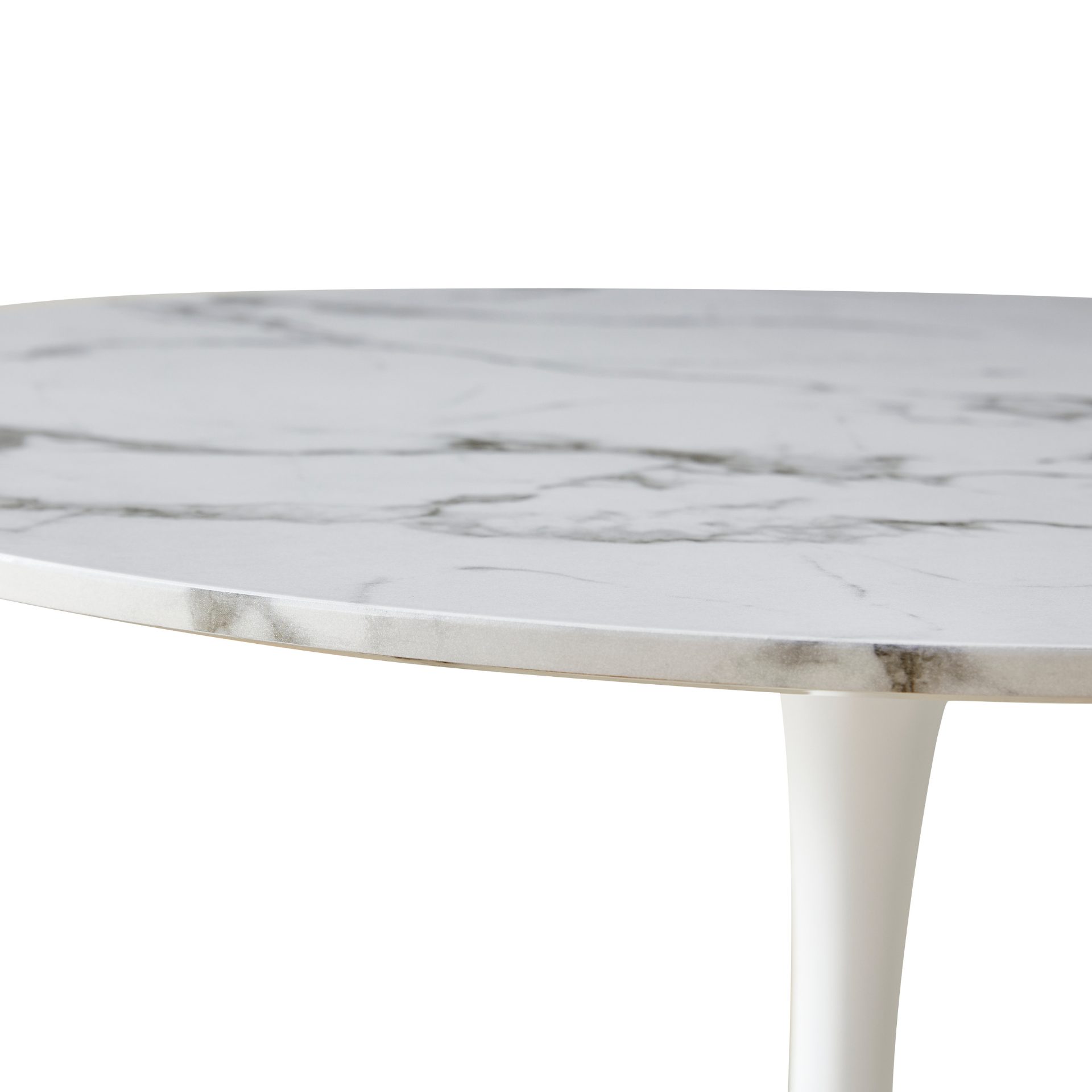 Zander - Ronde witte eettafel met marmeren uitstraling met trompetvoet
